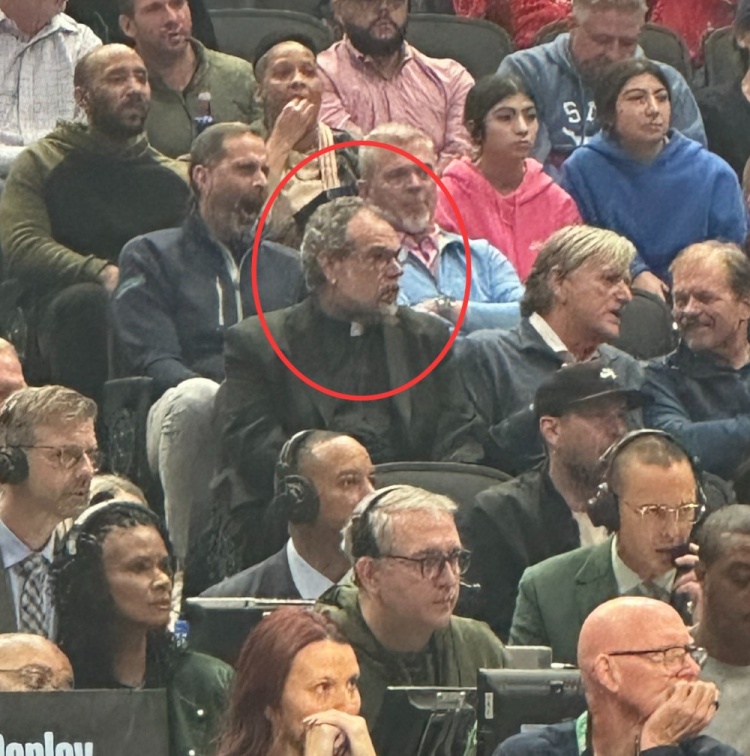According to team reporter Nick Angstadt, a priest was sitting in Harrison's original seat in the audience today.