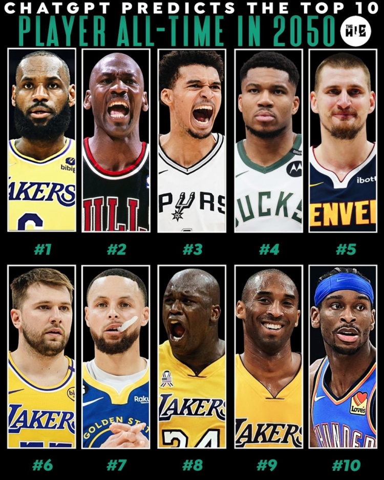 - ChatGPT forecasts top ten history in 2050: Zhan Yi Qiao, two Wen, three Curry, seven, fat, eight, and nine