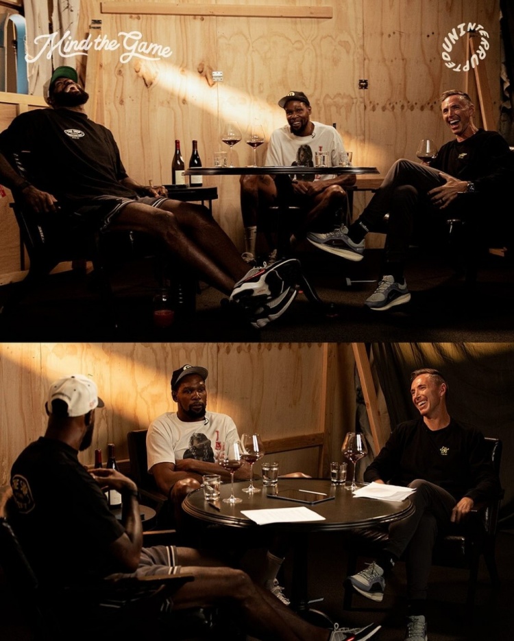Durant participated in James and Nash s podcast program, three people took photos to warm up & Durant has excellent temperament