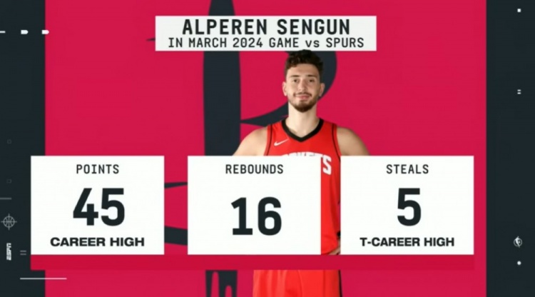 In that game, Shen Jing showed off his power, shooting 19 of 32 from the field, 2 of 3 three-pointers, and 5 of 7 free throws. He scored a career-high 45 points, plus 16 rebounds, 3 assists, 5 steals (tying a career high) and 1 block.