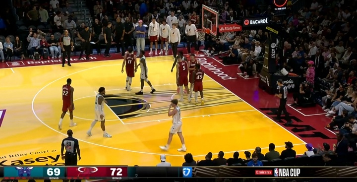 The Heat led the Hornets by 3 points 72-69 at halftime.