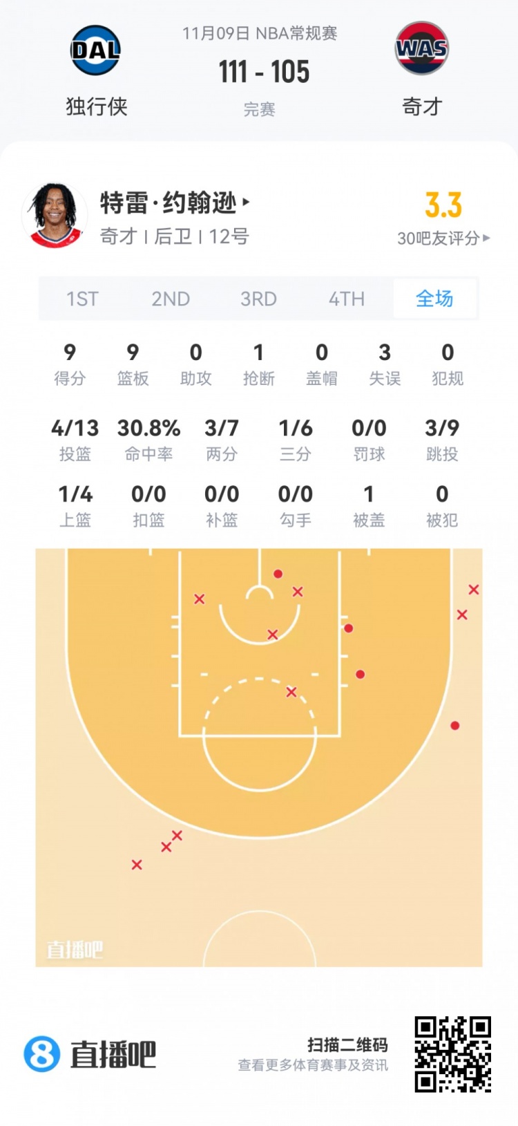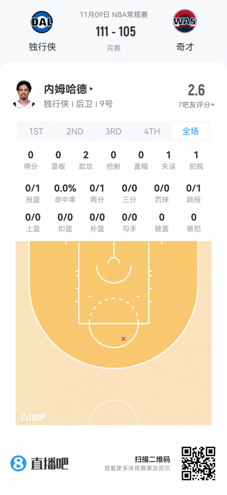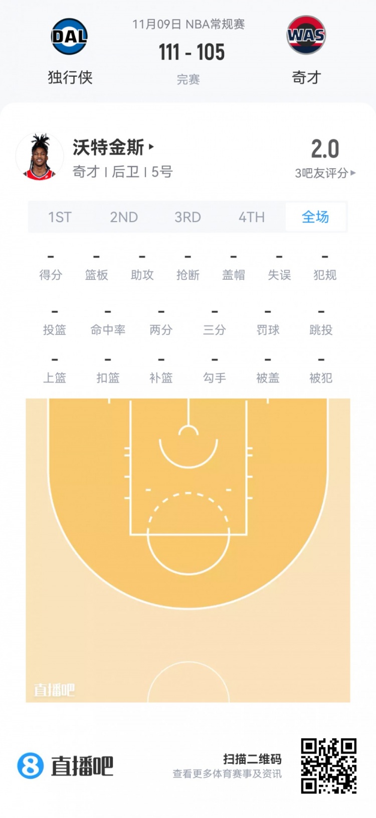 Jameer Watkins, the 43rd pick of the second round of the Wizards, appeared for 0.5 minutes