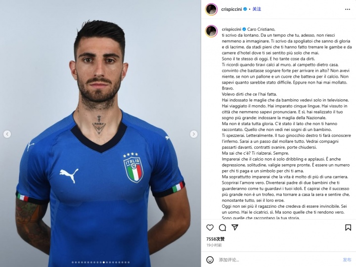 "Today is not an ordinary day for me. Today I will end a chapter that marks my life: football." Piccini wrote on his Instagram account. Shortly after he announced his retirement, Valencia responded: "You are one of us and wish you all the best in the new stage."