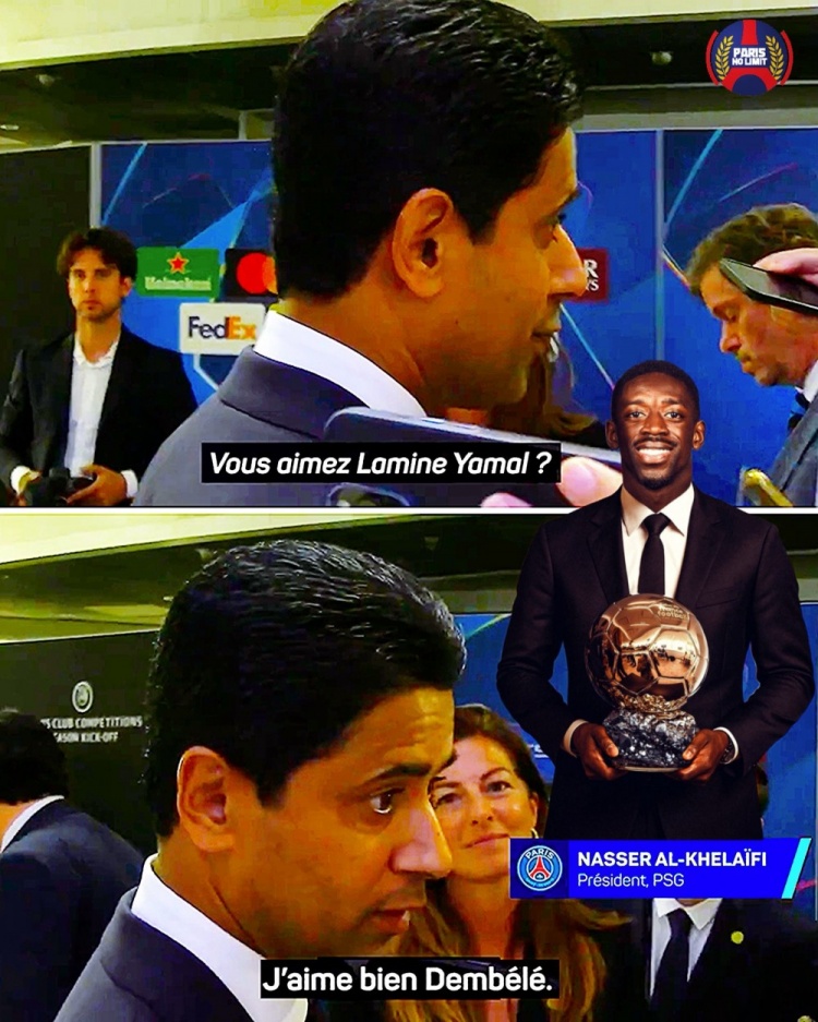 Paris Club Chairman Nasser was interviewed by the media and was asked about topics related to Yamal and Dembele's competition for the Golden Globe Awards.
