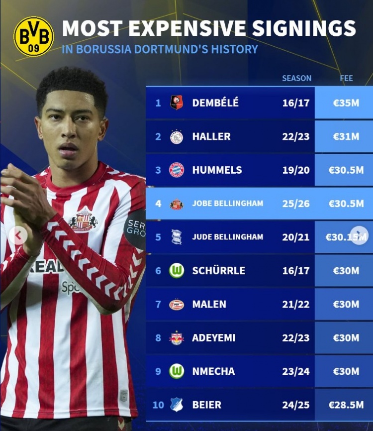 Dortmund s historical signing list: Dembele beats Ale to the top, Fox Elegant + Bellingham Brothers in the top five