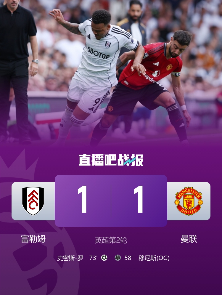 Manchester United lost 1-1 Fulham to win two rounds of the start of the game, and B Fee lost points, Yoro made an own goal, Smith Rowe equalized