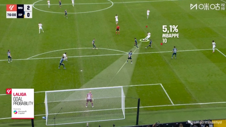 La Liga broadcast gave data, Mbappe had only 5% chance of scoring before the shot. In the end, Mbappe aimed far and near, and the goalkeeper had almost no response.