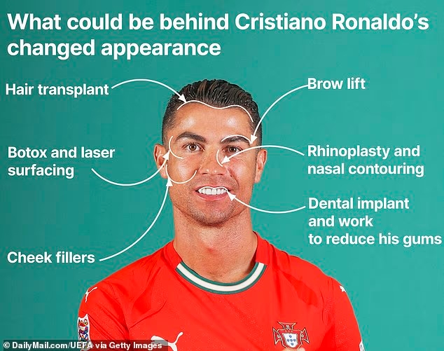 Dr. Levine believes that Ronaldo may have undergone endoscopic brow lift surgery, combined with Botox and possibly laser resurfacing, to make him look "clean, tidy, and refreshed."