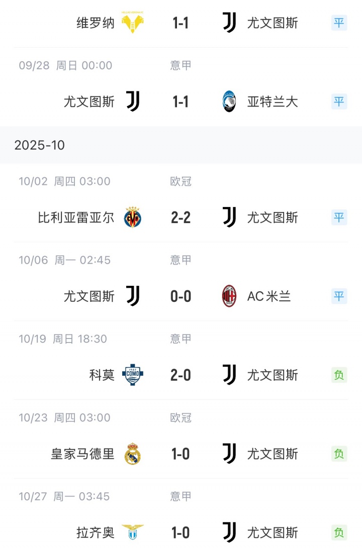 Juventus has been winless in 8 games in all competitions and failed to score in four consecutive games.