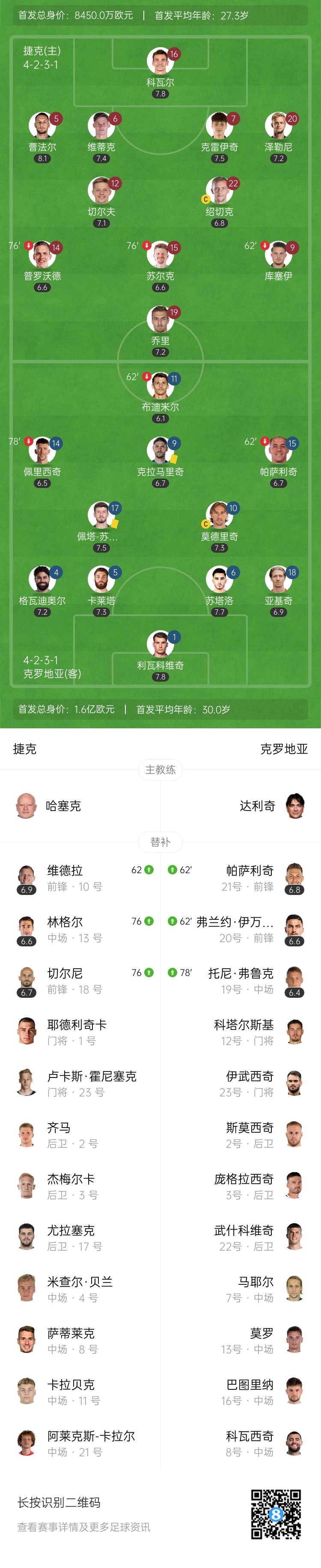 In this game, the Czech Republic took 11 shots and Croatia took 10 shots. Among them, Croatia failed to seize 3 excellent opportunities. In the end, the two sides ended in a goalless draw 0-0.